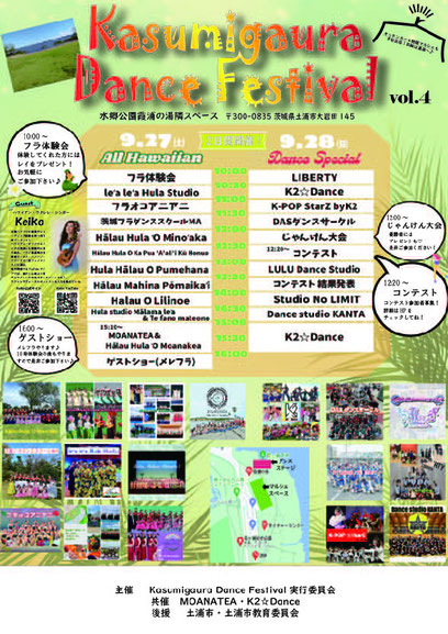 二日間に渡り、フラダンスやストリートダンス、また体験会やコンテストまで盛り沢山なステージ!!